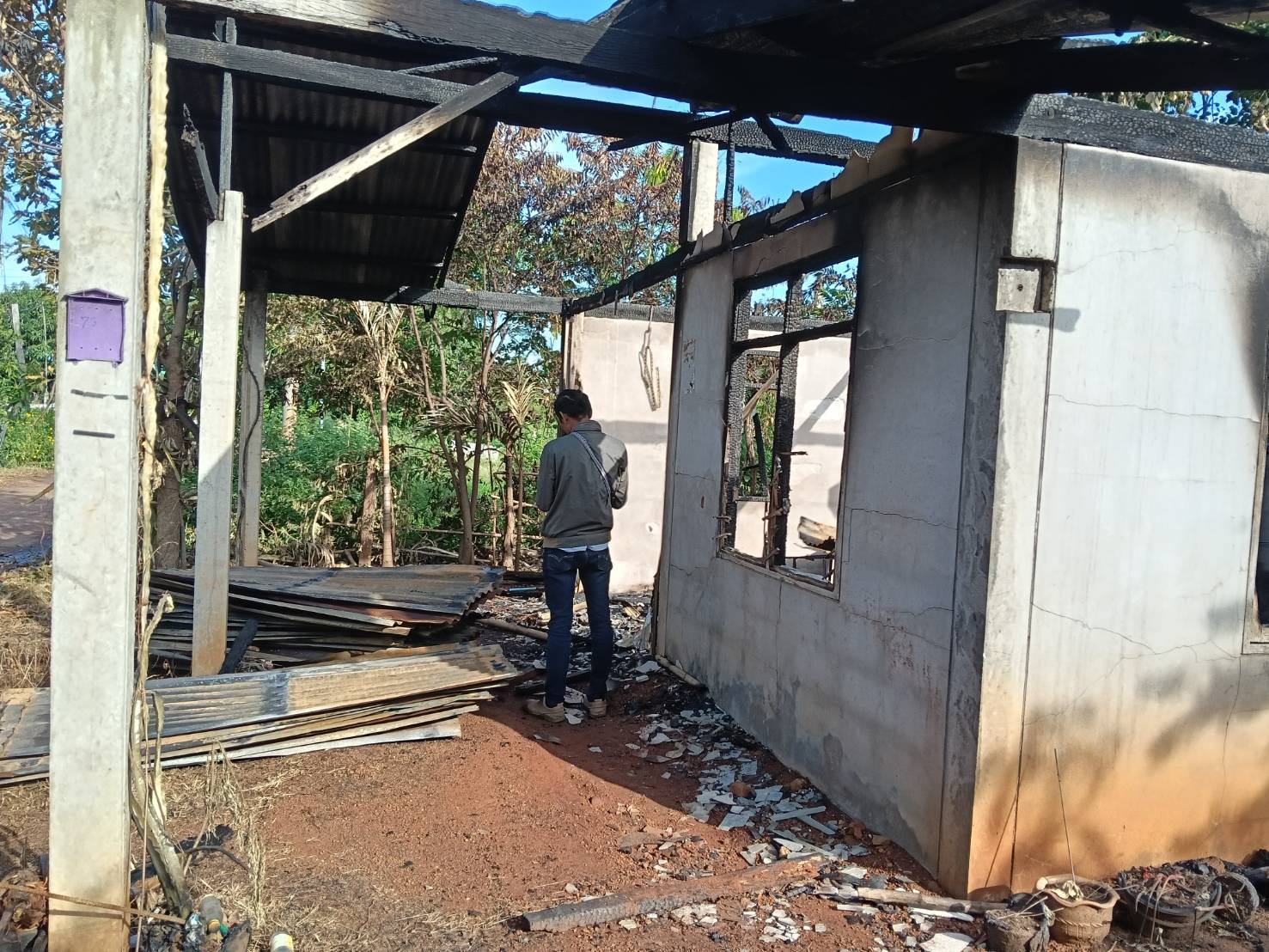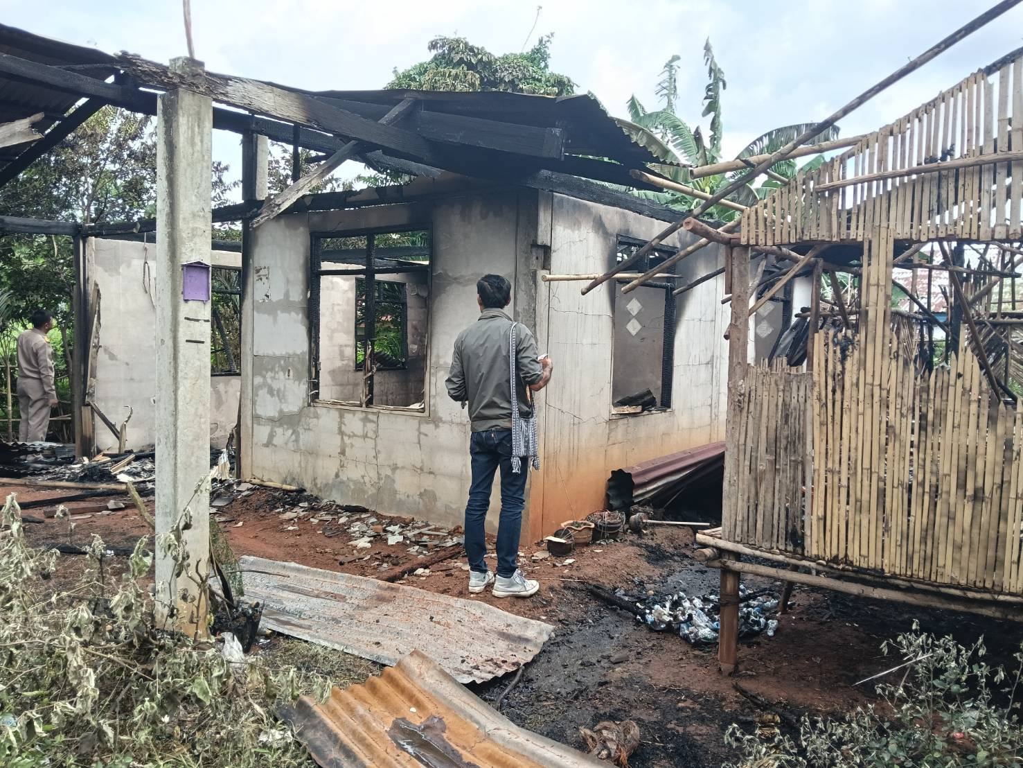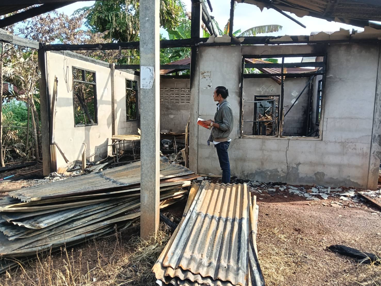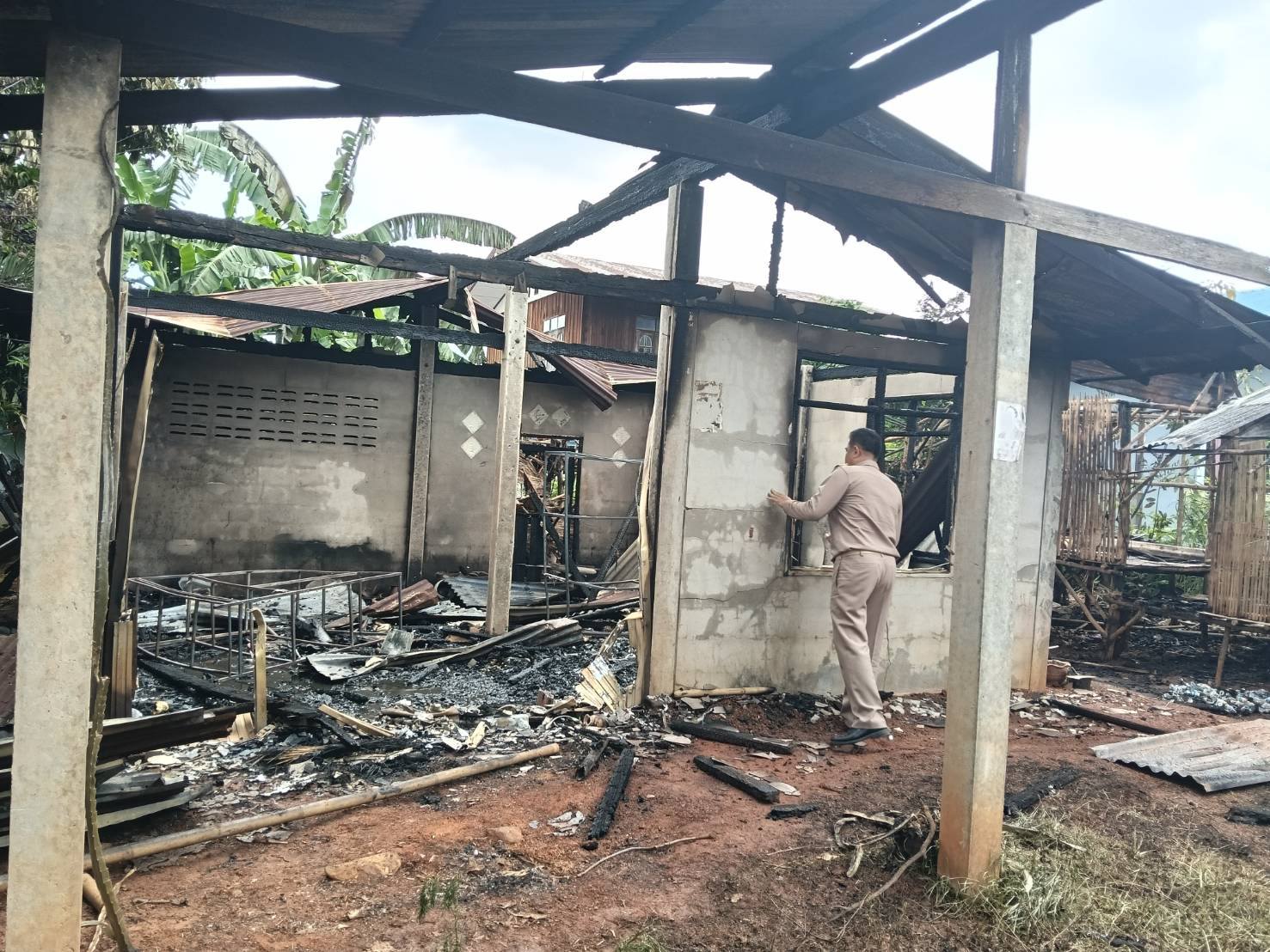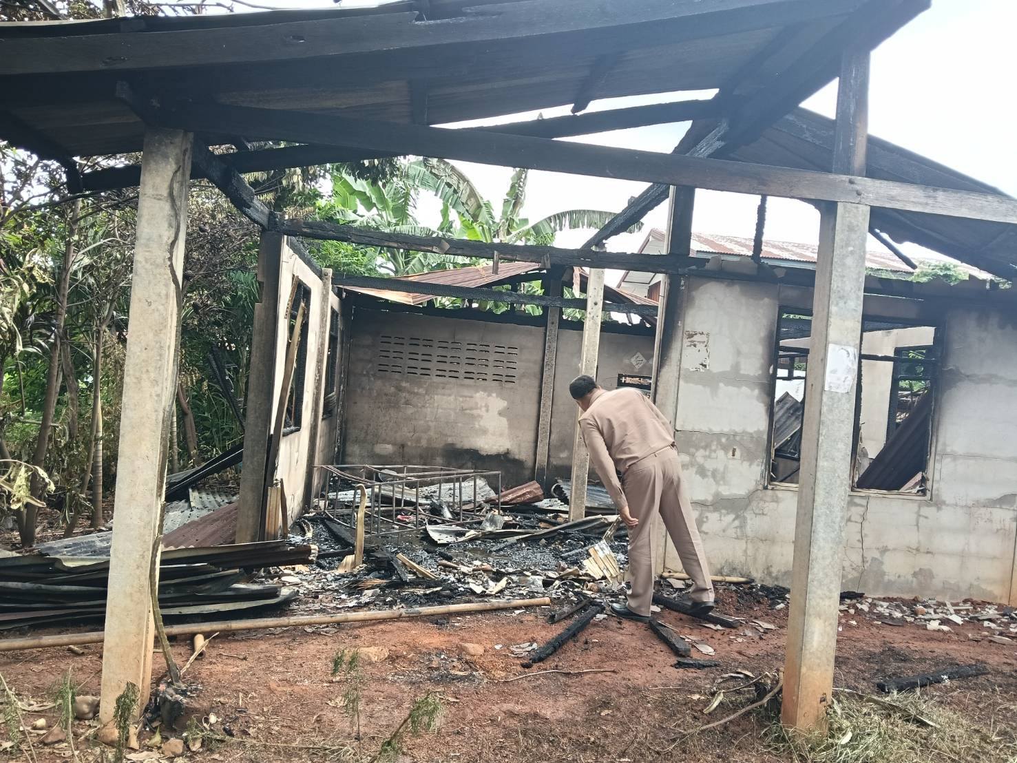 นายชาตรี๊ ศรีวิชาฐา นายกองค์การบริหารส่วนตำบลเก่าขาม ตรวจเยี่ยมให้กำลังใจพร้อมมอบถุงยังชีพบ้านผู้ประสบอัคคีภัย นางหนูพัด นาคำมูล เลขที่ 24 หมู่ 7 บ้านศรีทอง ตำบลเก่าขาม อำเภอน้ำยืน จังหวัดอุบลราชธานี